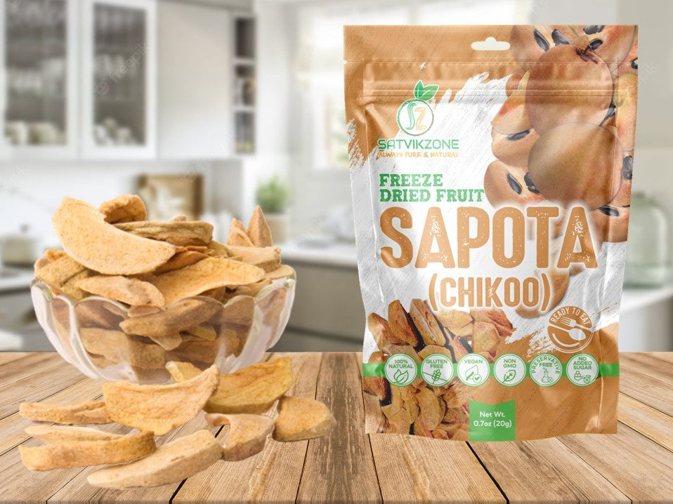 Freeze Dried Sapota (Chikko), 100% Natural, Ready-to-Eat Fruit Snack, Vegan, Non GMO, No added Sugars